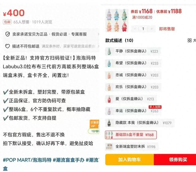 泡泡玛特天猫旗舰店显示,“前方高能”“心底密码”等多个LABUBU系列,目前不仅能直接下单单盒或整端盒,而且都标明“48小时内发货”。这和几个月前预售“秒空”的情况形成较大反差。