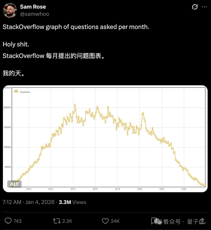当然了,Stack Overflow这么一凉,大家第一反应肯定是把锅扣在AI Coding头上。