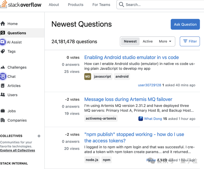 当初的程序员问答圣地,现在的提问数量甚至比18年前上线首月时的问题数量还要少。