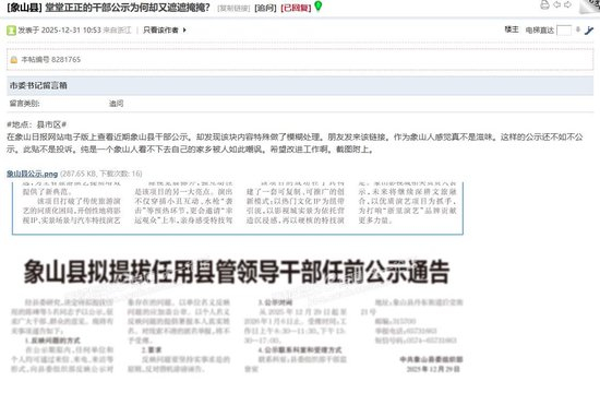 1月6日,潇湘晨报记者在多个网络平台查询,均未发现该则公示。这则电子版公示为何模糊呢?记者致电象山县组织部,工作人员表示,他们不回复此问题,只接受举报等反映。