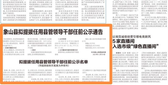 2025年12月30日,象山县组织部在当地报纸发布了这则公示,公示时间2025年12月29日到2026年1月6日。相关版面电子版显示,该公示和其他几则公示(公告)均是模糊的,一些小字难以看清,与版面上其他清晰的内容产生鲜明对比。