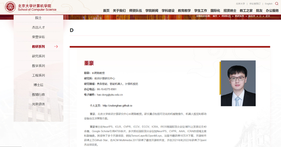公开资料显示,董豪教授是国家级高层次青年人才计划入选者,同时担任科技创新2030国家重大项目首席科学家。研究方向深耕具身智能、大模型、强化学习、计算机视觉及开源AI系统领域,核心目标是构建兼具成本效益与通用性的机器人系统。其学术成果丰硕,在NeurIPS、CVPR、ICRA、RSS等国际顶尖会议/期刊发表论文90余篇,Google Scholar引用量超万次,是CVPR、NeurIPS、AAAI、ICRA等顶尖会议的领域主席。团队及研究工作获得IROS最佳应用论文入围奖、华为智能基座突出贡献奖、字节跳动优秀导师奖、中国具身智能大会杰出青年研究者论文奖提名、英特尔中国优秀研究奖、世界人工智能大会青年优秀论文奖提名等一众国内外奖项。