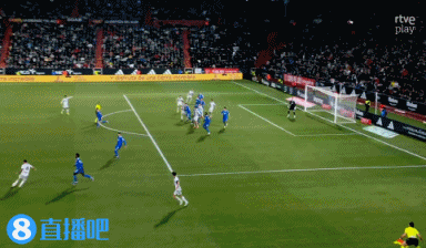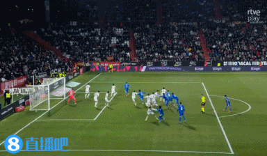 第8分钟,皇马前场任意球机会,居莱尔主罚直接打门,这球高出了横梁。↓