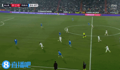 上半场伤停补时2分钟,半场结束,皇马暂1-1阿尔瓦塞特。